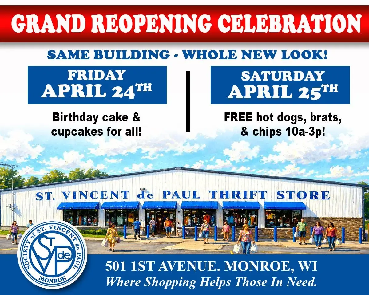 New sales floor, lots of awesome treasurers, brats and hotdogs offered to all customers. Free of charge – donations to support our mission accepted!...