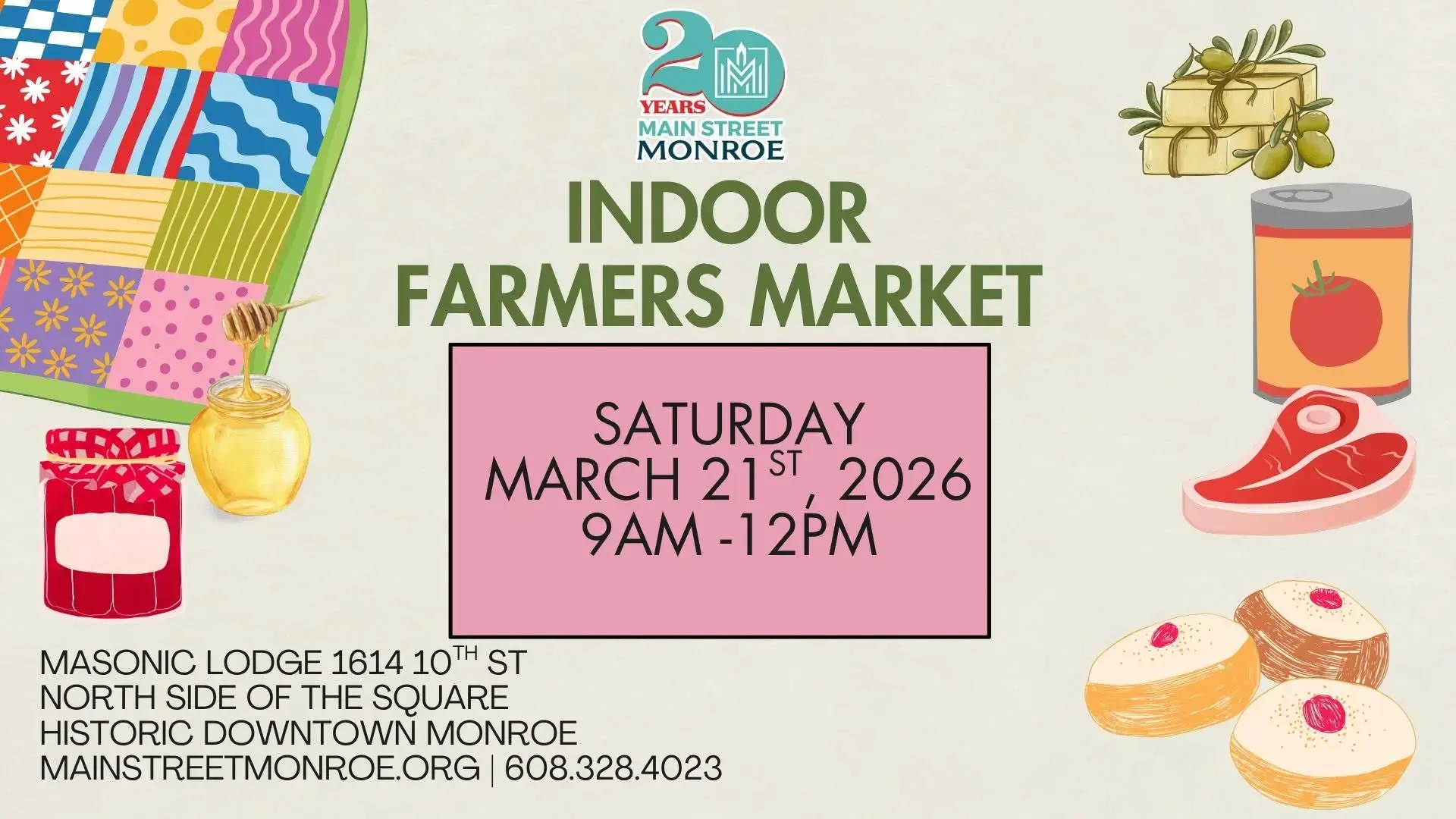 Join us for our indoor farmers market featuring seasonal produce, baked items, meats, honeys, canned goods, soaps, and craft items! The indoor market is held at the Masonic Lodge on the north side of the square. Entry is in between Orange Kitten Yarns and The Farmer’s Wife Photography Studio. Vendors may be contacted to arrange curbside pickup orders. The Main Street Monroe Farmers Market is sponsored by SSM Health Monroe Hospital....